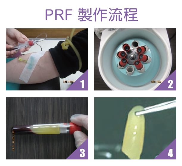 所謂的 PRF,指的是富含血小板的血漿(platelet-rich plasma),主要是利用血小板的特性進行治療。 如同一般人所知,血小板具有凝血、止血的功能,不過,近年許多醫學研究發現,血小板在組織修復及再生功 能上,也扮演著重要角色,它可以在人體受傷後局部釋放出生長因子,促進血管增生及組織的再生與修復。我們抽出自身的血液,利用離心機去除紅血球,取得高濃度的血小板血漿。因為是自己體內抽取,沒有排斥問 題與副作用,也相對安全。PRF 優點