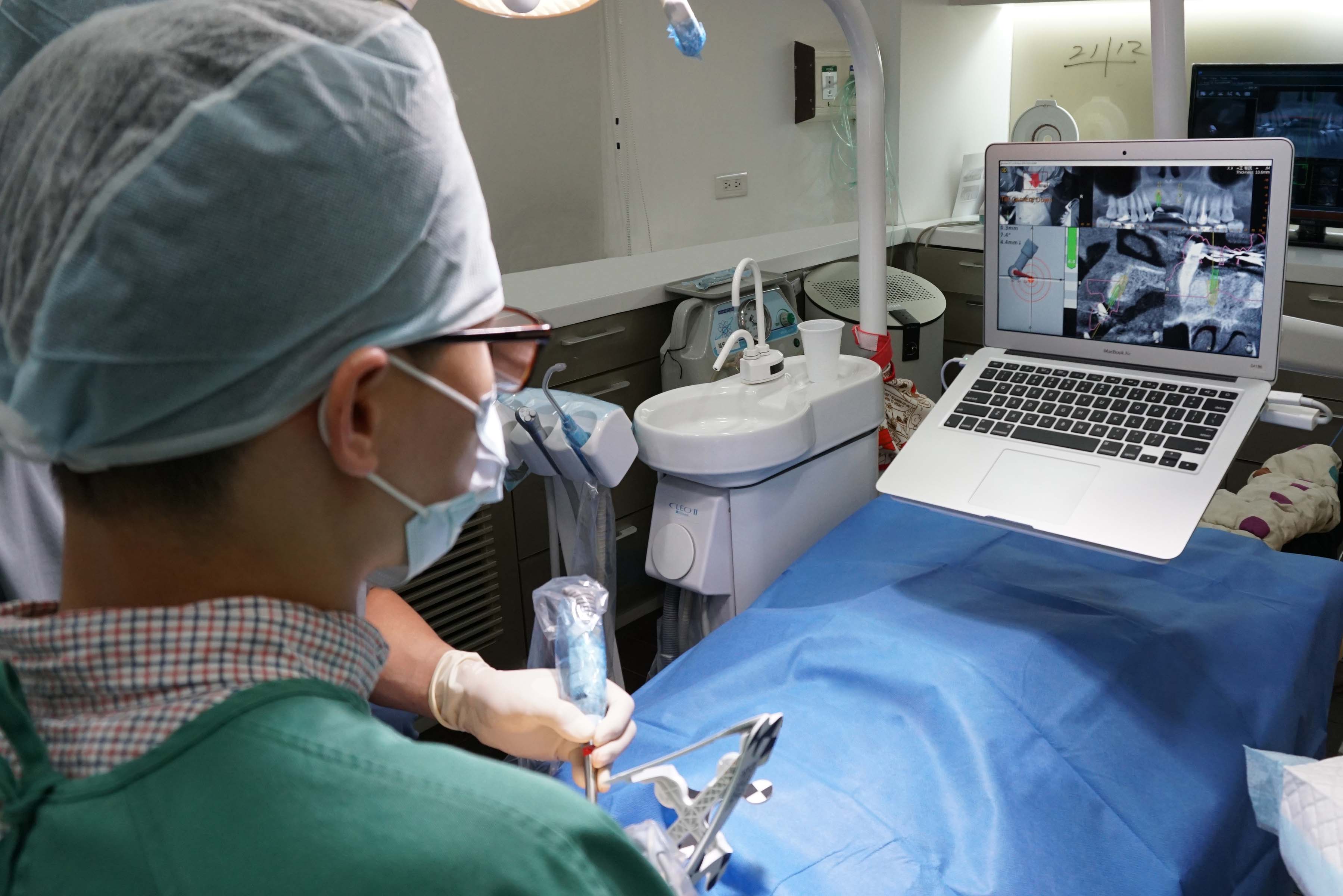 ▲人工植牙搭配導航系統,輔助牙醫師手術,精準定位植牙。