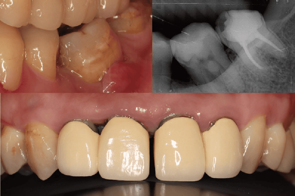 除了每日刷牙、勤用牙線保持牙齒健康,照鏡子時記得也要觀察一下牙齒狀況。一位門牙裝有假牙的先生觀察到原本沒有縫隙的門牙,竟出現越來越明顯的間隙,再加上感覺左邊下面臼齒牙齦腫脹,諮詢過很多醫師卻沒有得到完整治療,最後赫然發現已經是全口牙周病,經過分階段完整治療才徹底解決困擾。