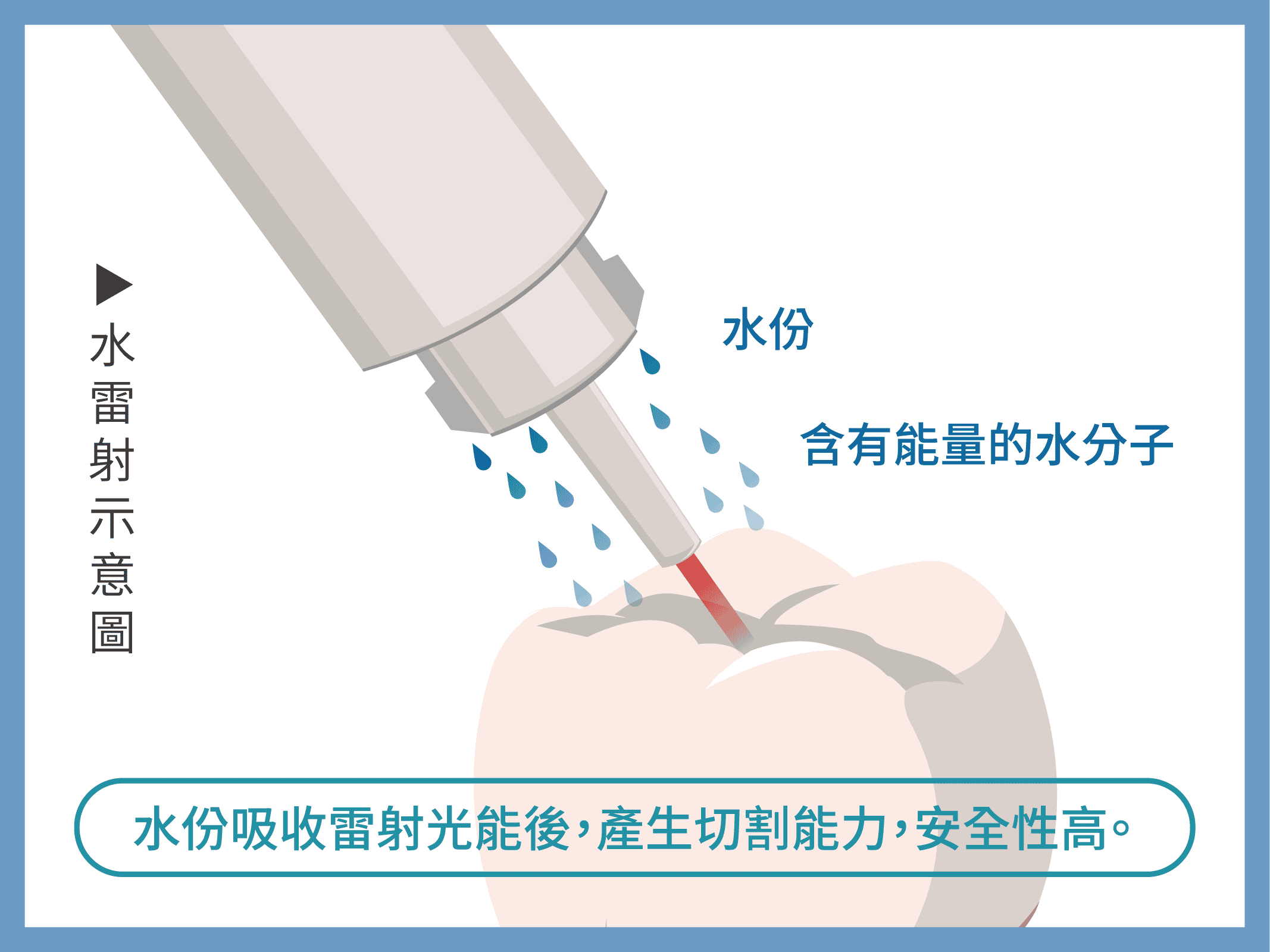 葉立維指出,近年出現的水雷射,因為具有安靜低噪音、療程壓力低;清除發炎組織同時有效滅菌、降低出血、傷口比較小;療程低疼痛,減少牙科局部麻醉藥使用量;刺激健康組織修復,癒合速度加快、減少術後不適等優勢,成為許多患者的首選。此外,水雷射因為微創安全,適合系統性疾病如糖尿病患者或是有在服用抗凝血劑的患者。