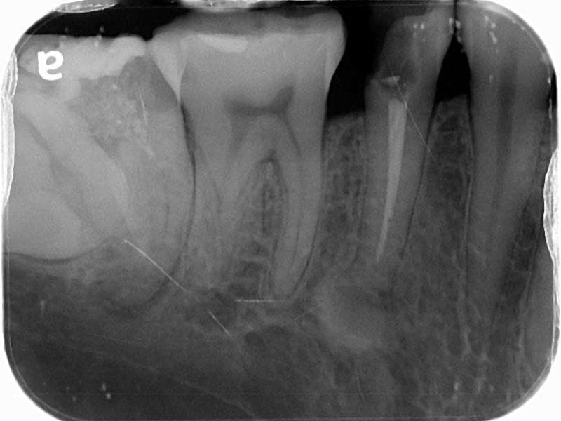 圖示:初步看診時Mr.Su主訴不適位置的X光照,右下第二小臼齒根管治療未修復而導致牙齒斷裂