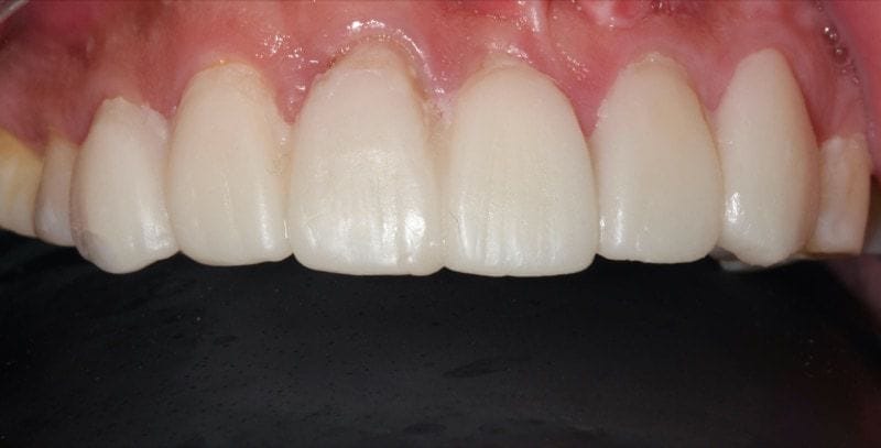 圖示:陶瓷貼片完成後的上排前牙近照,通過數位化流程提高效率和品質