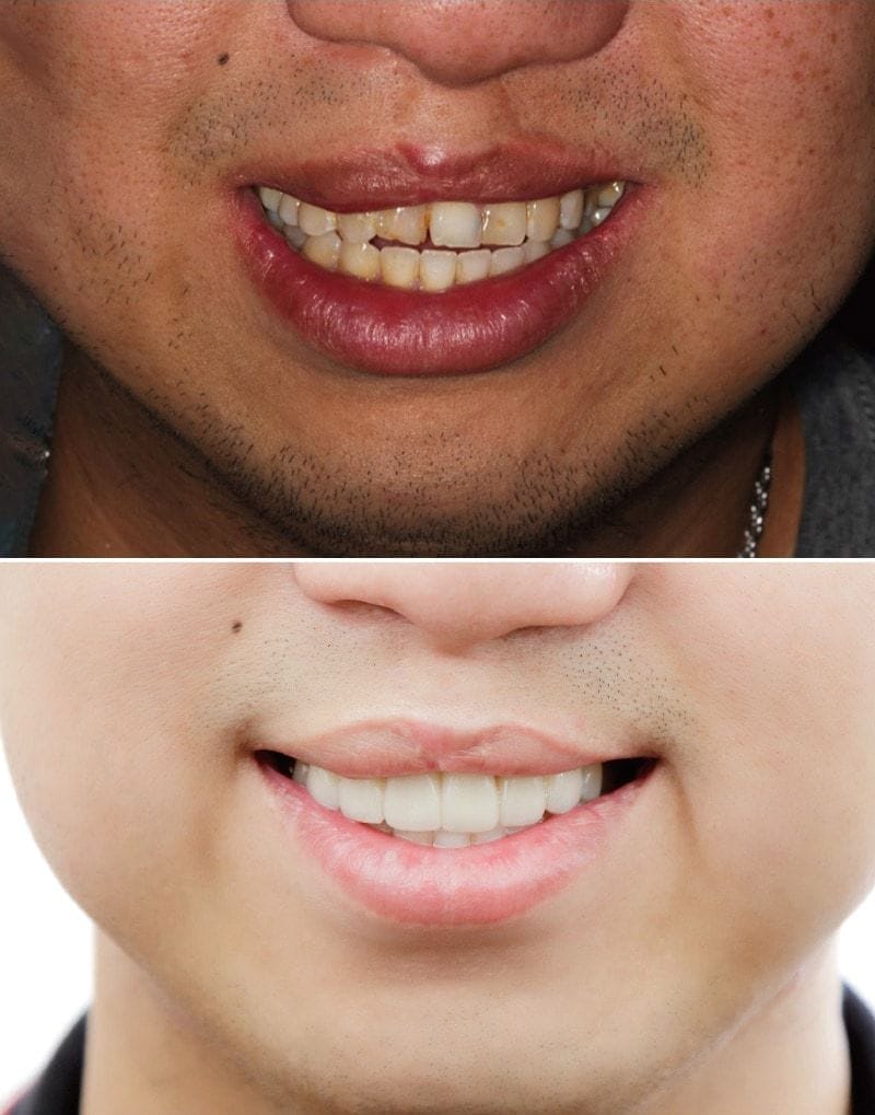 整個牙齒做了完善的整理,兼顧功能與美觀,術前術後的比較,明顯可以看到他的自信加分,竟然連運勢都更加順暢了!