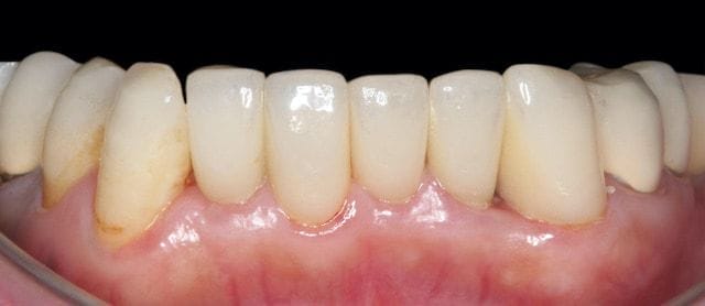 組織被組織吸附與染色有關(amalgam tatoo)。有時候傳統含金屬的假牙,也可能會造成牙齦的染色。