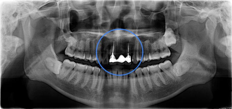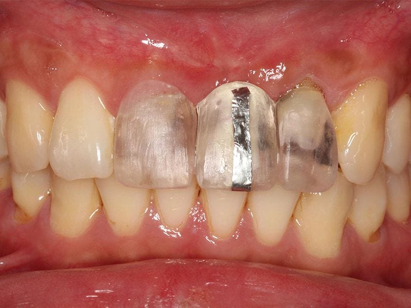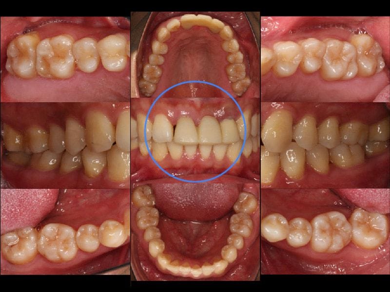 治療前完整口內檢查,其中前牙區已經更換為臨時假牙