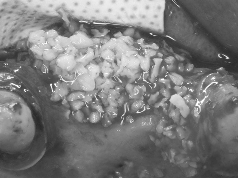 植牙前補骨手術,置入人工骨粉 補骨後覆蓋再生膜 手術導板可顯示最佳植牙位置,同時模擬未來鄰