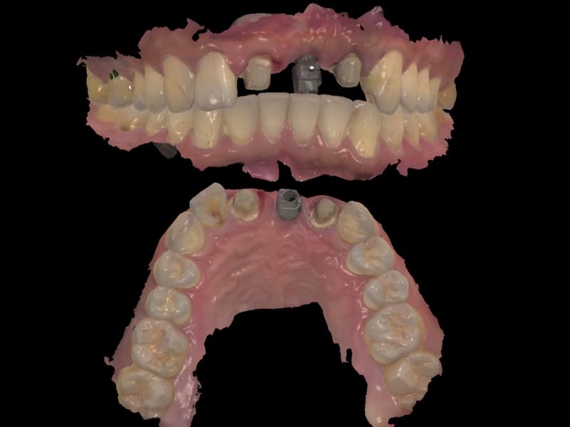 植入後等待大約四個月左右,植牙牙根和齒槽骨的骨整合完成,我們就可以開始製作假牙。牙科數位科技的進步,能夠讓我們利用電腦數位口內掃描的方式執行假牙製作流程。並且有很專業的牙技師配合,除了精準、效率,我們也能讓成品更加擬真。