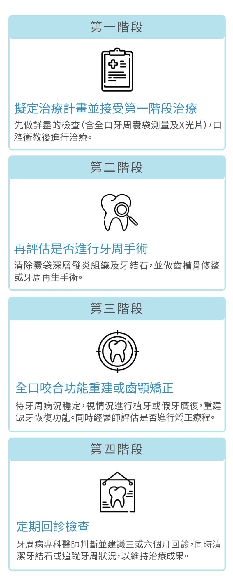 • 牙周治療後﹐紅腫發炎的牙齦消腫﹐恢復健康會出現局部牙齒敏感、齒間縫隙、牙根裸露等情況﹐而正確的口腔衛教是維持牙周穩定的重要關鍵。