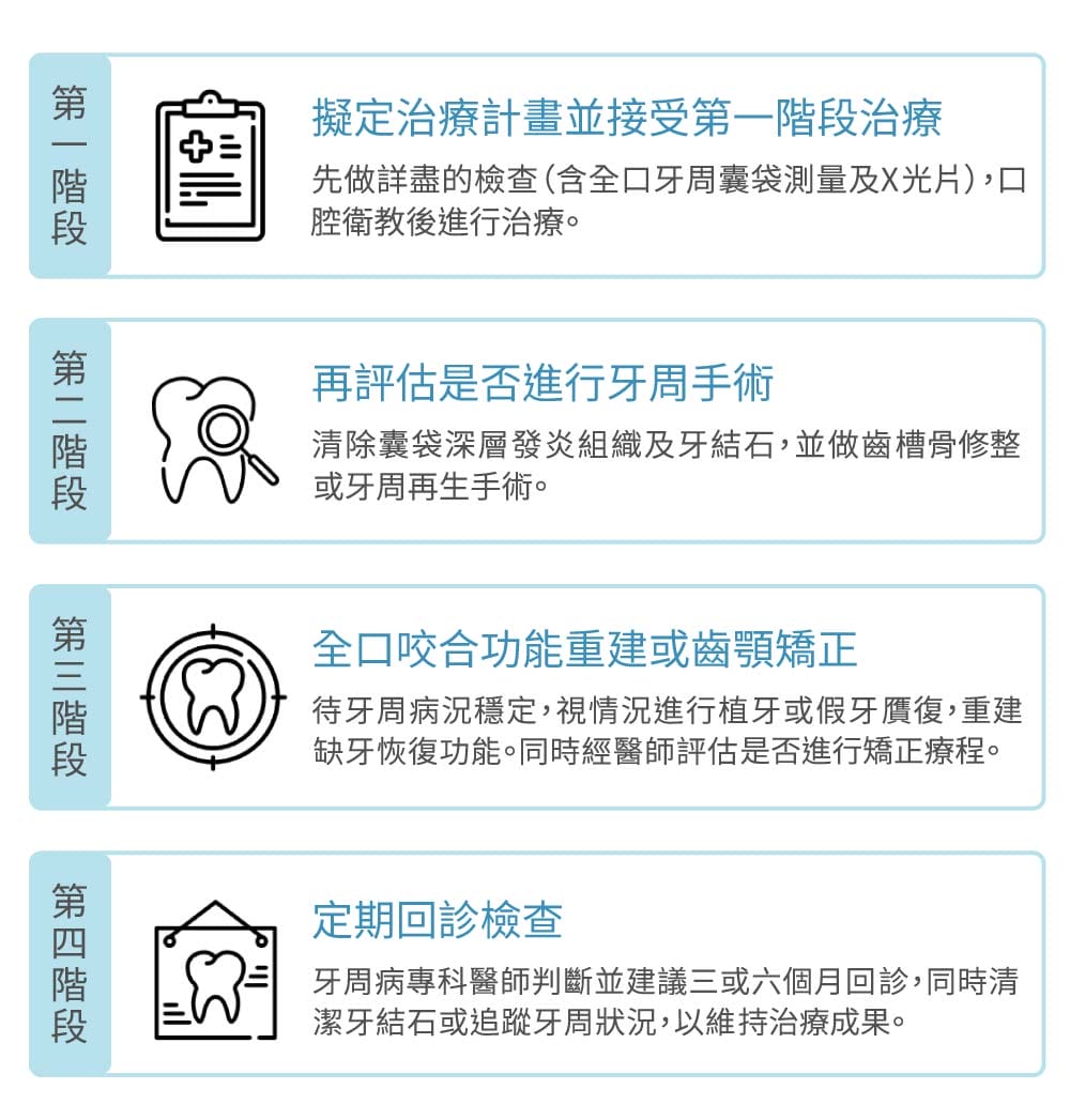 大部份的牙周病是慢性與隱性的﹐常因沒有即時診斷而延誤治療﹐最終導致牙齒不保。牙周治療是牙科治療的基礎﹐牙周病專科醫師是口腔環保工程師﹐有牙周病一定要找專科醫師處理﹐以保持口腔健康、功能、美觀並且長期穩定。