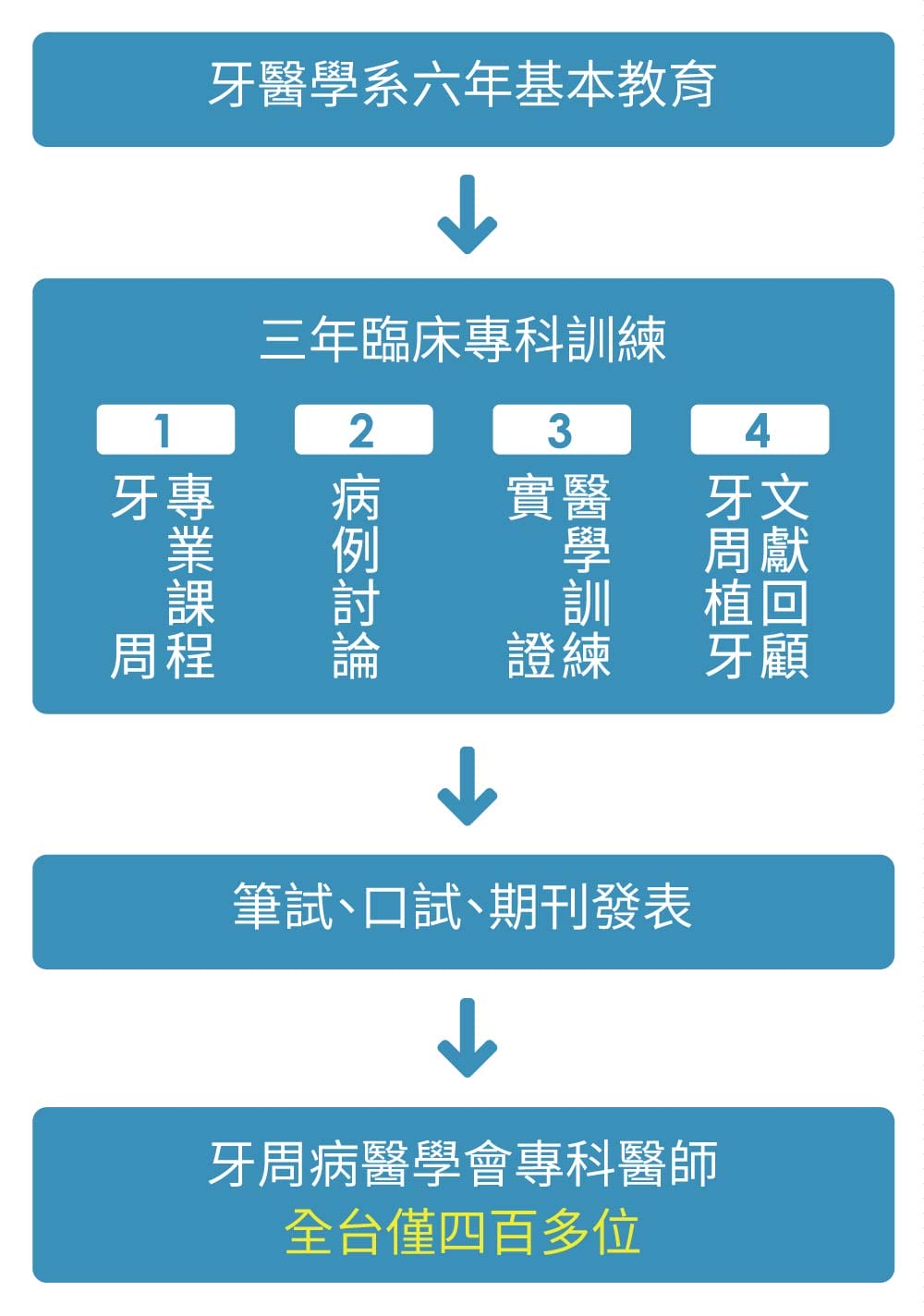 牙周病專科醫師是經牙周病專業訓練﹐俱備獨立診斷與牙周病治療能力的牙醫師。