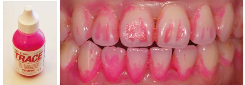 • 使用牙刷、牙間刷、牙線、單束毛牙刷清潔後﹐塗抹牙菌斑顯示劑檢測是否刷乾淨。