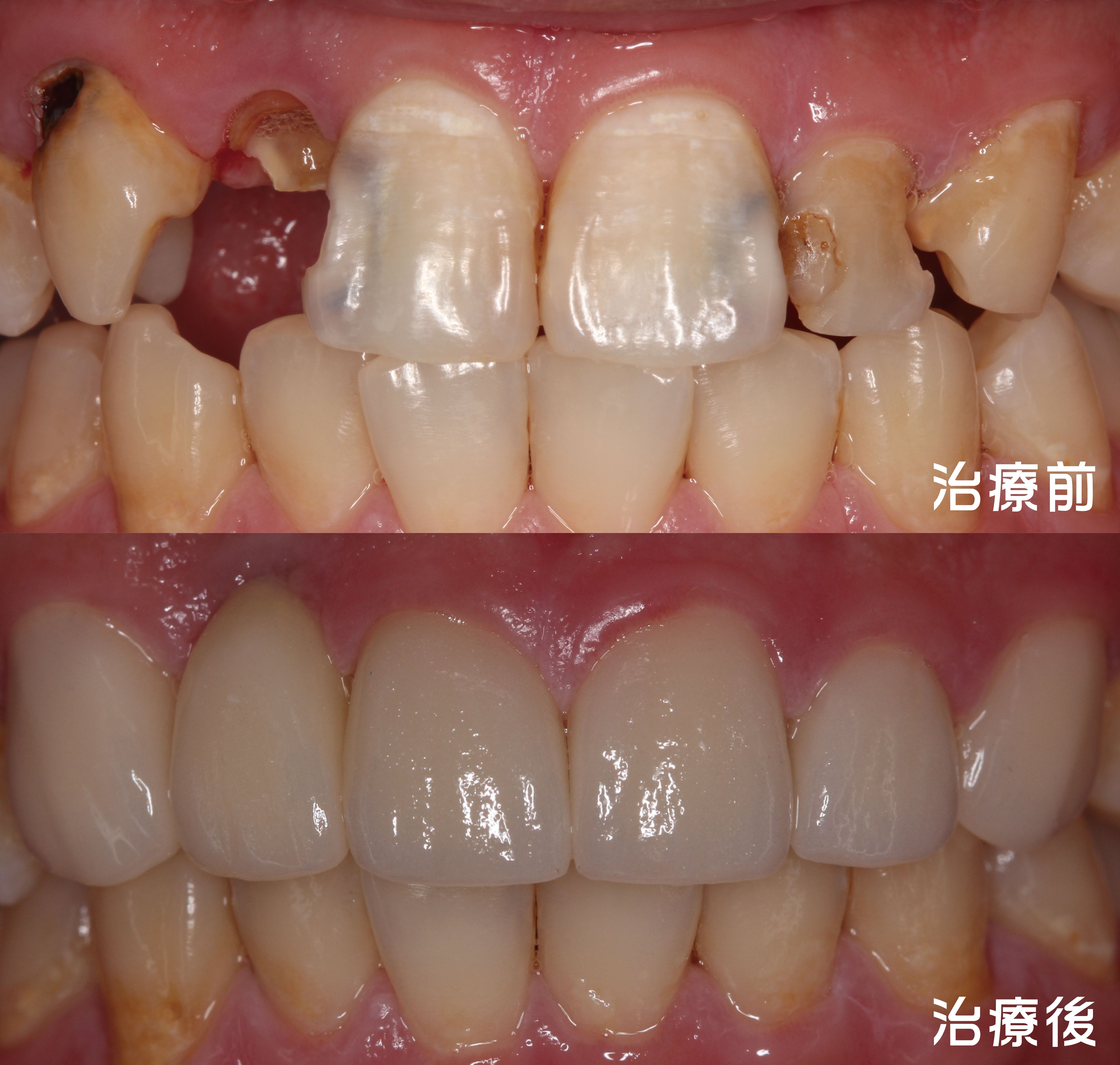 全瓷牙冠和金屬融合瓷牙外觀看起來都是瓷牙﹐但美觀的呈現及人體相容性是明顯不同的。全瓷牙冠的接受度在近幾年來有越來越高的趨勢﹐主要是因為全瓷牙冠內層完全無金屬支撐﹐因此光線的折射、透射效果和自然牙相仿﹐假牙看起來不會暗沉死白﹐和真牙幾可相仿。