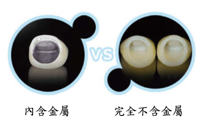 假牙內冠比較表 傳統金屬 全瓷牙冠